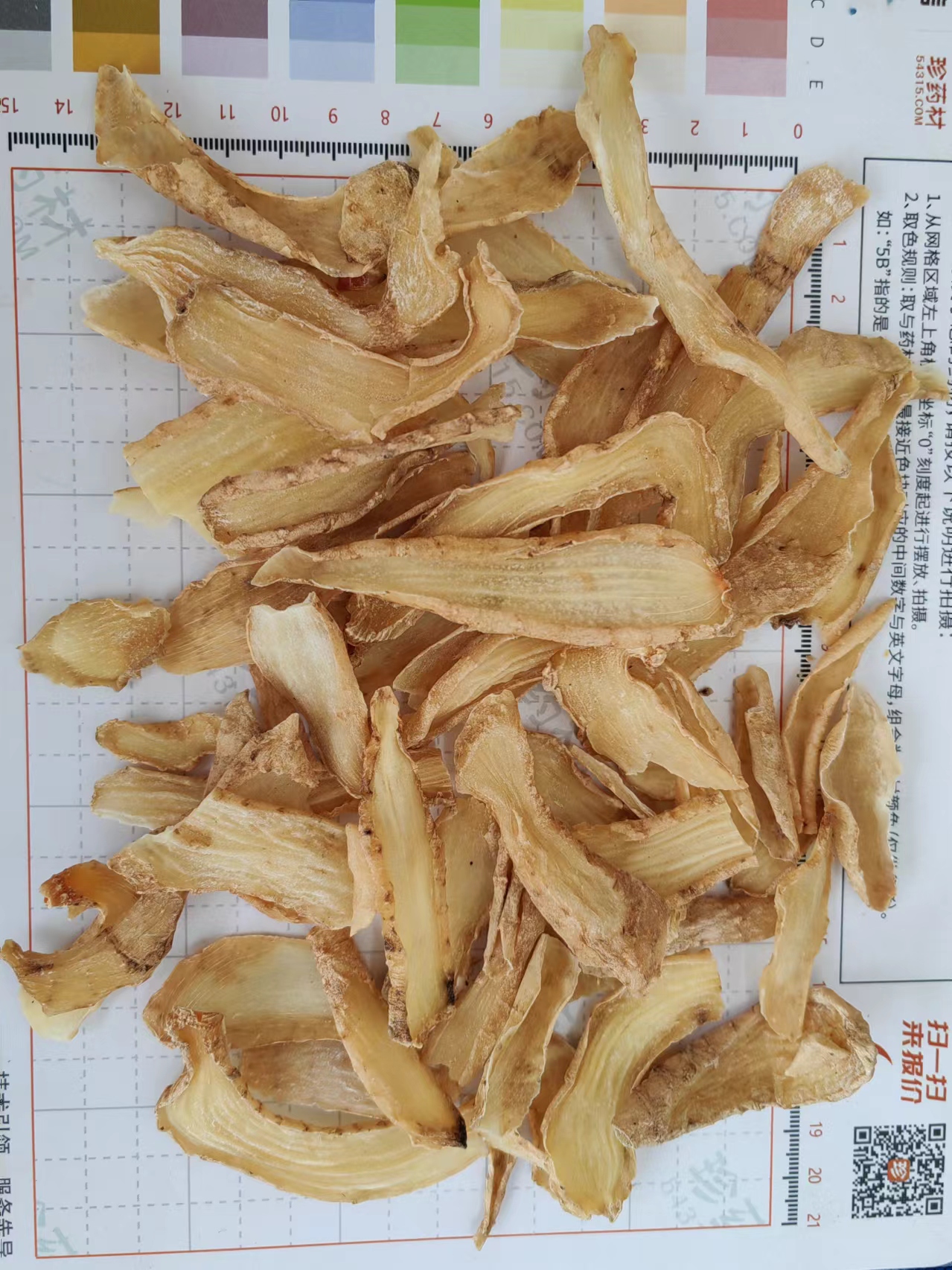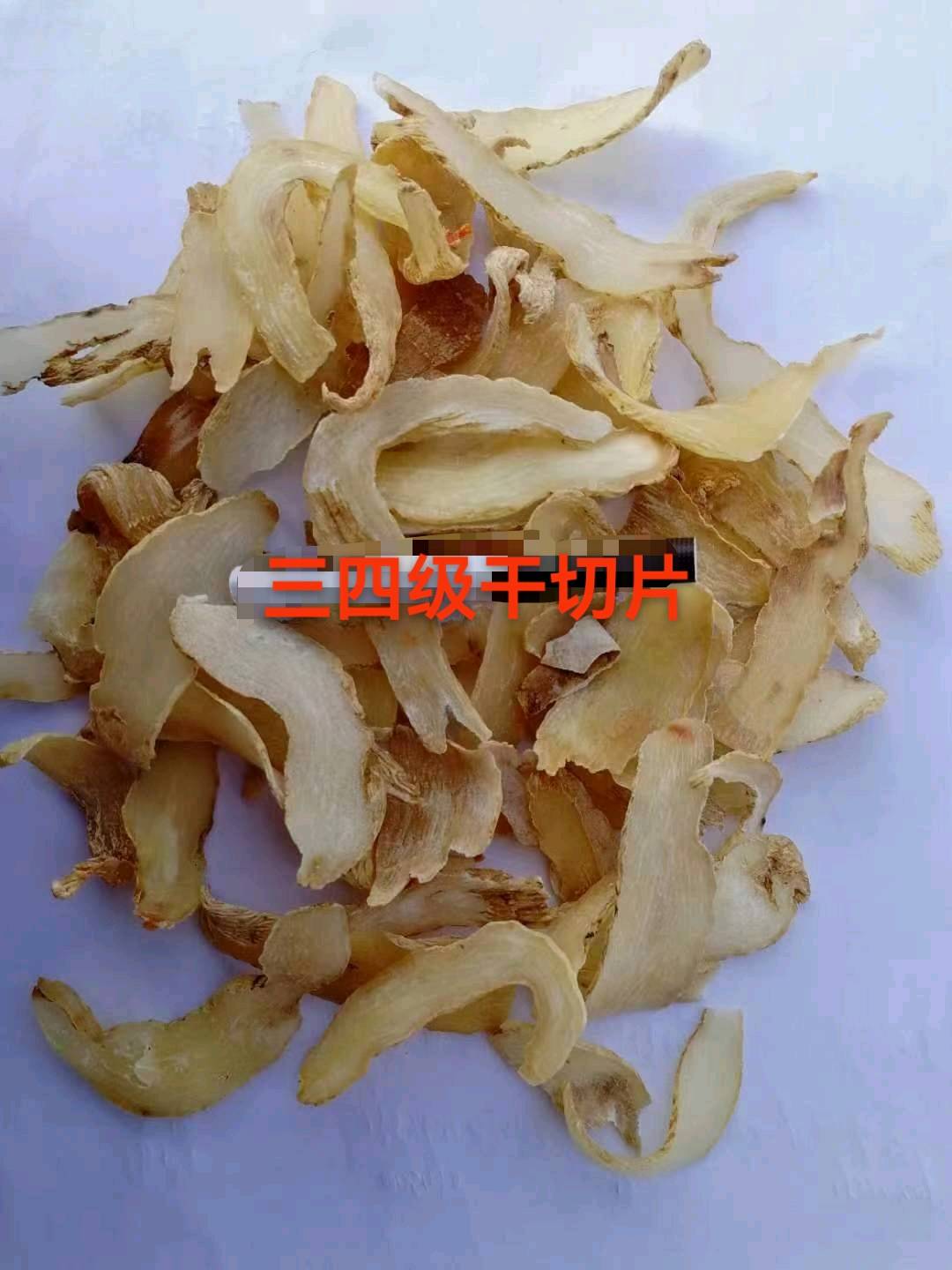 3000公斤质量要求:三四级干切片,宽度不低于1.2cm,薄片(1-2mm),片型平整,10号方孔筛以下碎片不得过10.0%,无黑点无伤疤,切面黄白色,大小、颜色均一,边皮片不得过5.0%,二氧化硫残留量不得过200mg/kg,水分≤11.5%,含量≥0.27%。,2020版药典标准
