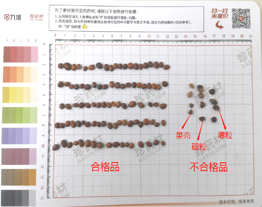 1500公斤质量要求:95货,过色选过风机;杂质不得过1.5%,瘪、破子、果壳等杂质不得过3%,颗粒饱满,无霉变。水分≤8.5%,灰分≤6.0%,含量:酸枣仁皂苷 A ≥0.035%,斯皮诺素 ≥0.085%。水分超标加扣2%。,2020版药典标准