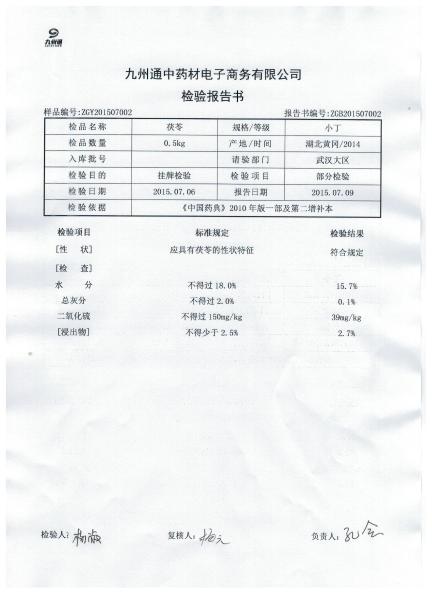 | 二氧化硫 | 2010版药典法 | 不得过150mg/kg | 39mg/kg |