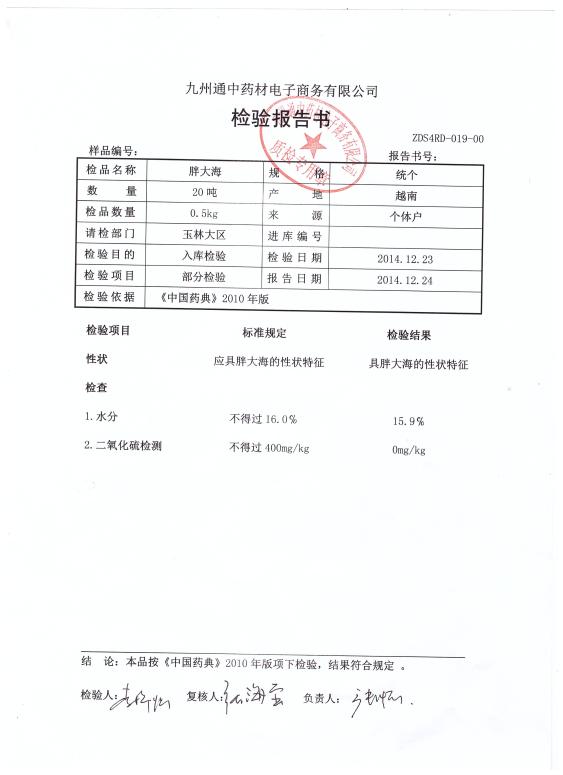 | 二氧化硫 | 2010版药典法 | 不得过150mg/kg | 0 |