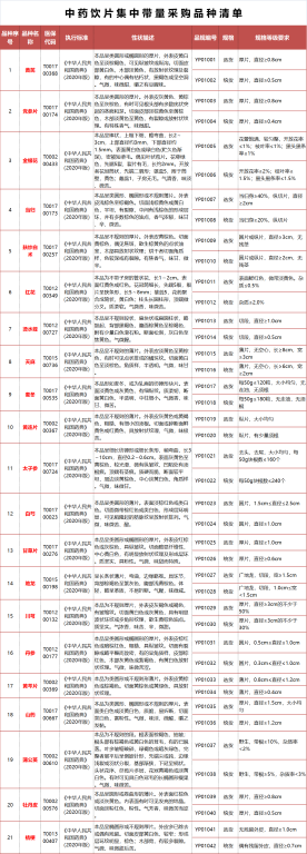 中药饮片集中带量采购品种清单