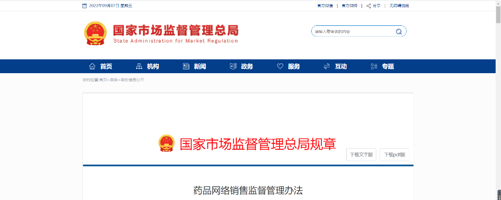 近日,国家药监局发布《药品网络销售监督管理办法》,2022年12月1日起实施。