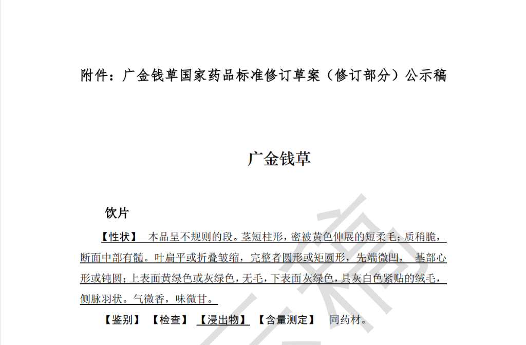 《中国药典》2020年版一部原文—广金钱草: