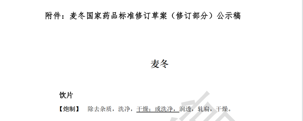 4月12日,国家药典委员会发布通知,拟修订麦冬、广金钱草、紫珠叶、大叶紫珠、滑石粉的国家药品标准(收载于《中国药典》2020年版一部),将拟修订的国家药品标准公示征求社会各界意见。