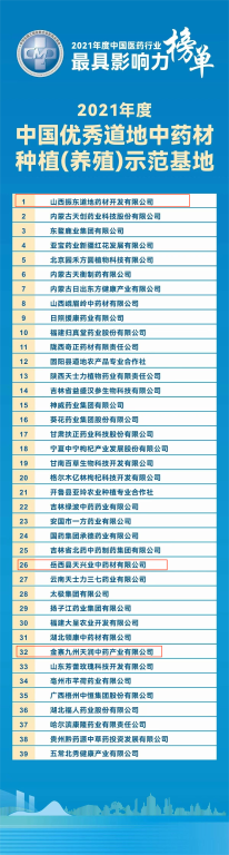 其中珍药材平台共3家供应商入选《2021年度中国优质道地中药材种植(养殖)示范基地》。
