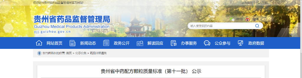 贵州省中药配方颗粒质量标准(第十一批) 公示