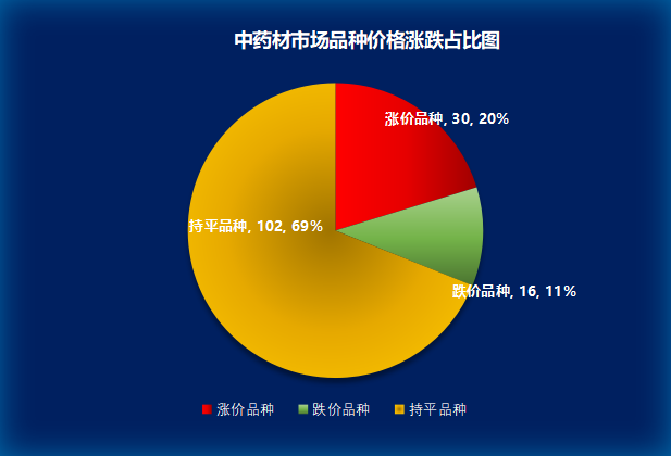本报告中涨跌幅为亳州市场、安国市场、玉林市场以及成都市场中药材价格综合涨跌幅度。