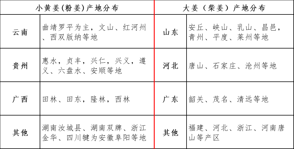 (1)姜的产区分布: