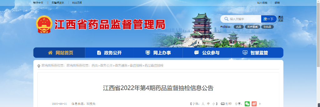 江西省2022年第4期药品监督抽检信息公告