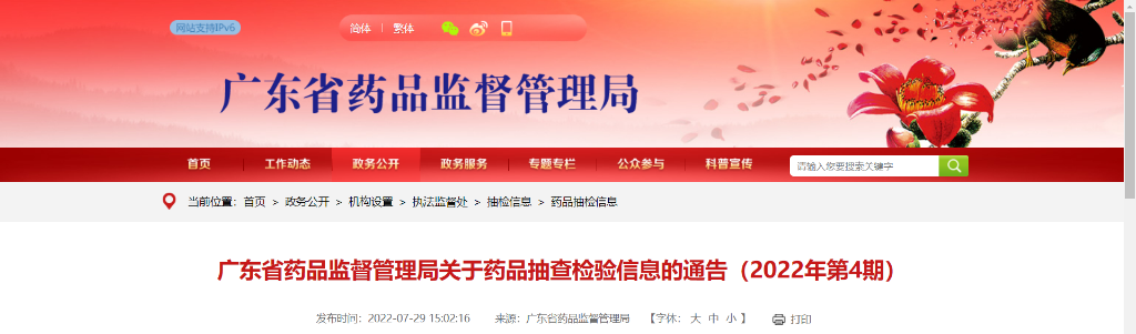 广东省药品监督管理局关于药品抽查检验信息的通告(2022年第4期)