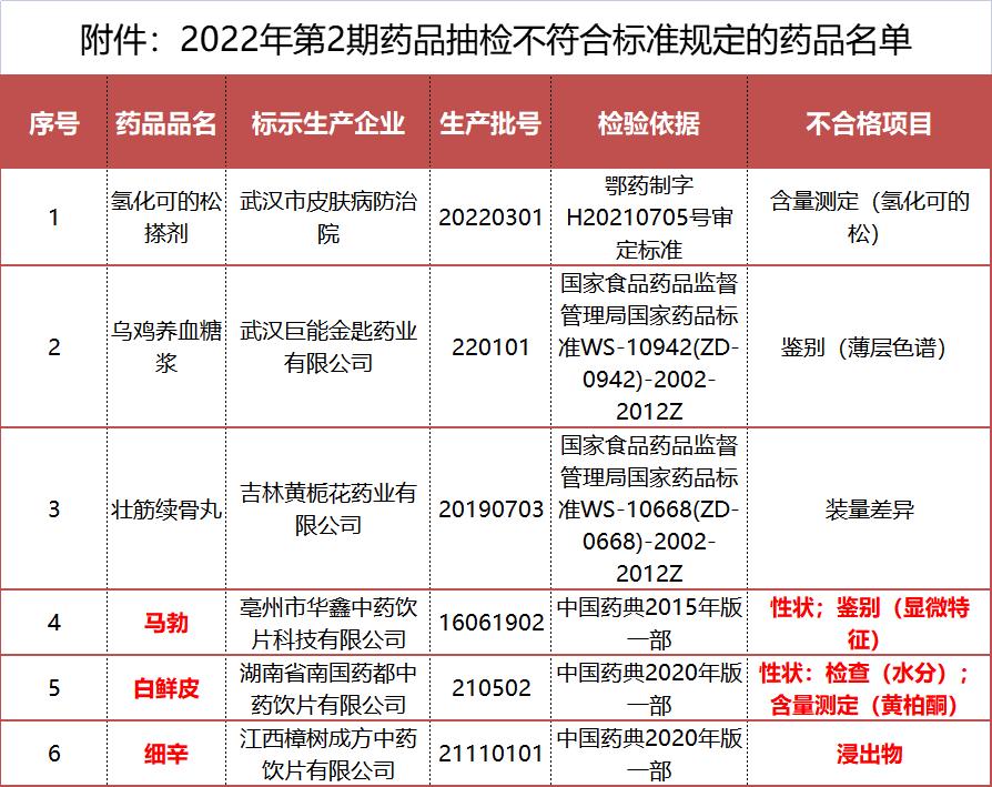 附件:2022年第2期药品抽检不符合标准规定药品名单