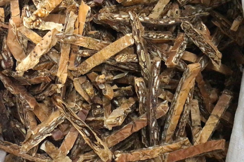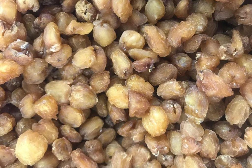 一年即可挂果,第二年收成较高,折干比为7:1,每年10月份左右产新,目前晒货要到5月份才可出货,现市场流通基本以陈货和炕货为主,时下市场上好货货源不多,行情一路上涨,好点的饮片丝价格51元/公斤左右。