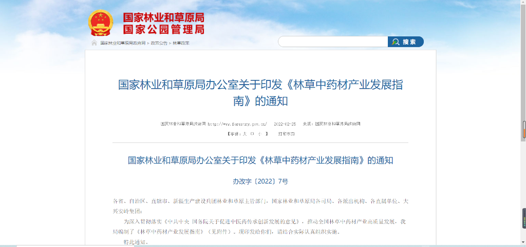 近日,国家林草局印发了《林草中药材产业发展指南》,提出加强资源保护、建设生态培育基地、建设产地初加工与仓储物流基地、完善产业服务体系的4项重点任务,明确划分了大小兴安岭林区、长白山林区、三北防风固沙林草区、黄土高原水土保持林区、黄淮海地区林区、长江中下游地区林区、云贵川地区林草区、岭南地区林区、青藏高原林草区等9个林草中药材生产区。
