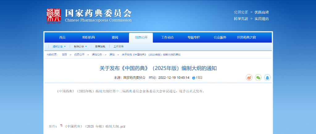 12月19日,国家药典委发布《中国药典》(2025年版)编制大纲。