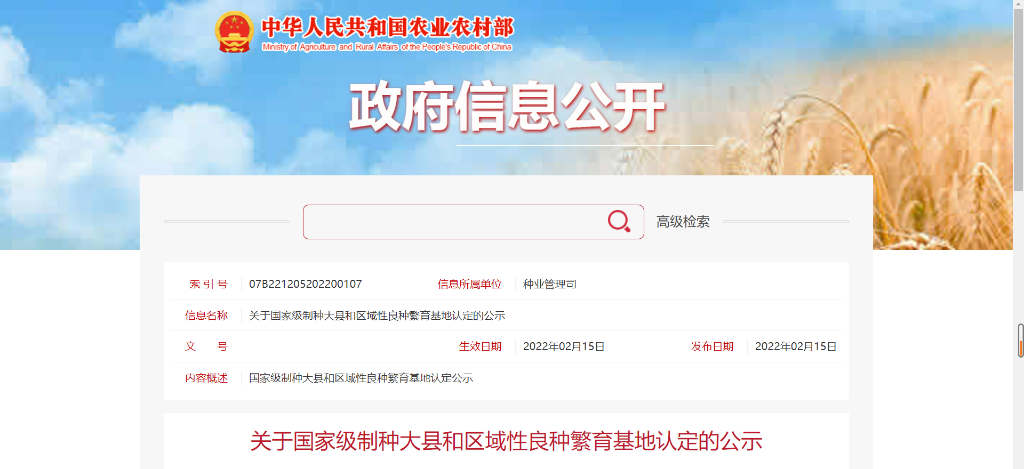 关于国家级制种大县和区域性良种繁育基地认定的公示