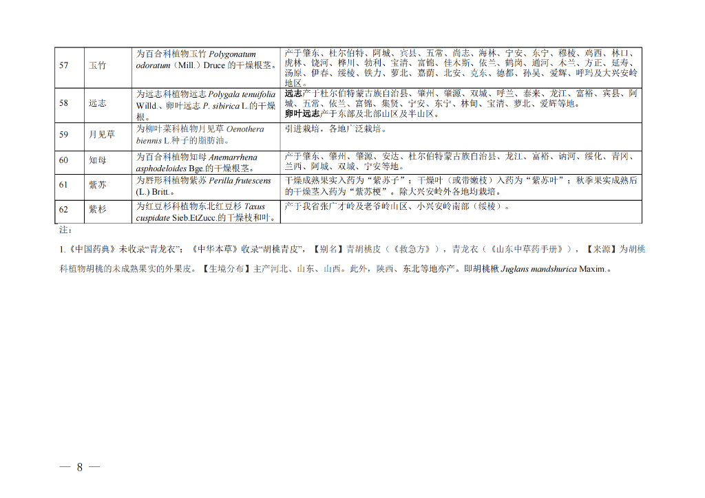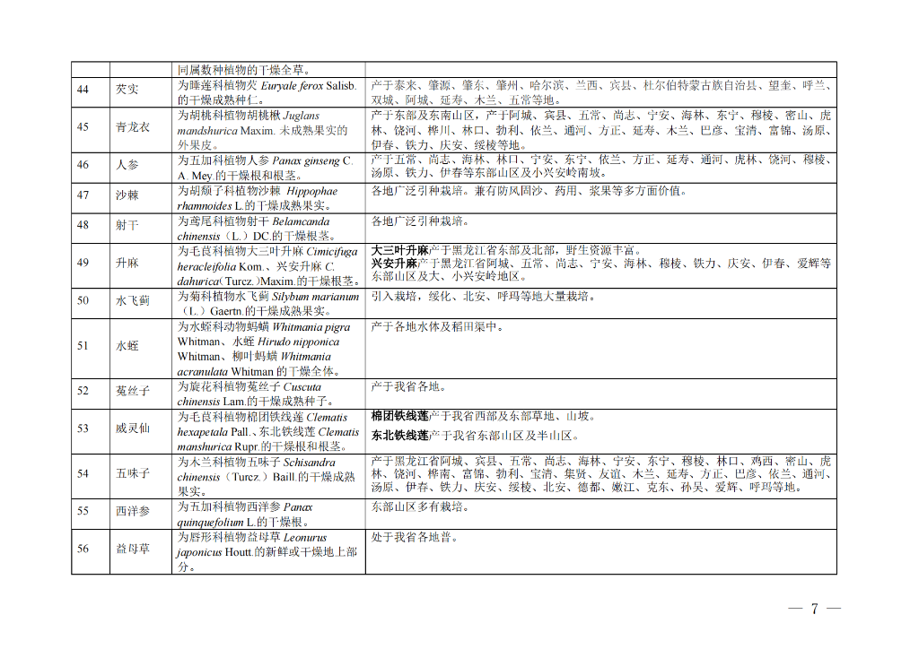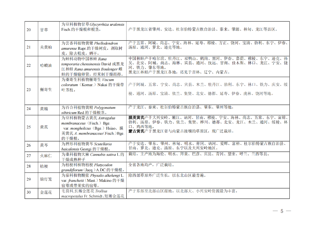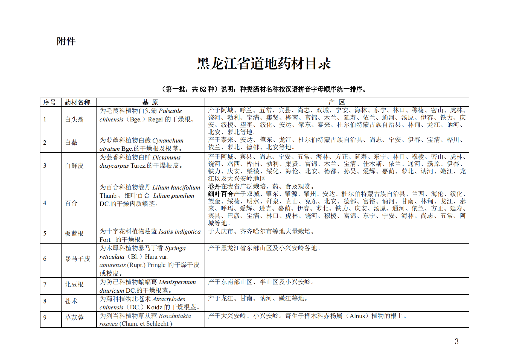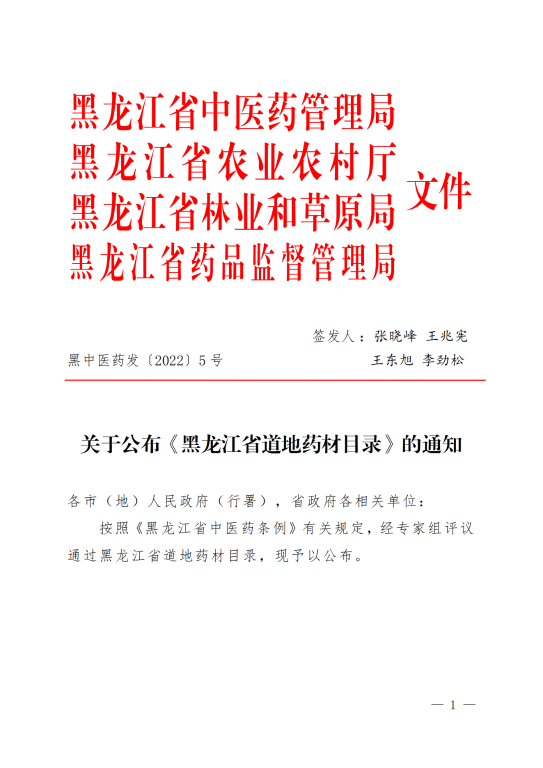 日前,黑龙江省中医药管理局会同黑龙江省农业农村厅、黑龙江省林业和草原局、黑龙江省药品监督管理局发布《黑龙江省道地药材目录》,经过品种遴选、专家会商和征求意见,收录了包括刺五加、五味子、人参、西洋参、关防风、赤芍、火麻仁、板蓝根、鹿茸等“龙九味”品种在内的共计62种黑龙江省道地药材。按照国家中医药局“有序规范发展道地药材”重点工作安排及《黑龙江省中医药条例》第二十三条规定要求,落实黑龙江省委、省政府发展道地药材工作部署,为推动黑龙江省道地药材质量更优、标准更高、品牌更强发挥积极作用。