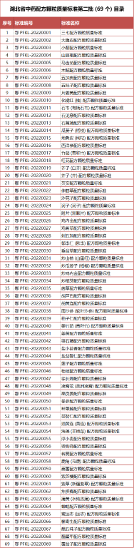 1.湖北省中药配方颗粒质量标准第二批(69个)目录