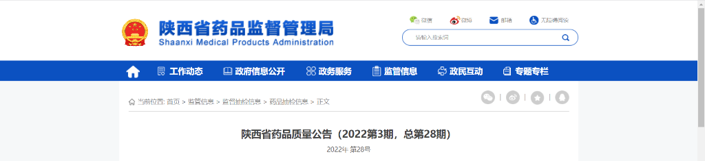 陕西省药品质量公告(2022第3期,总第28期)
