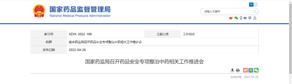 4月26日,国家药监局网讯,4月24日,为落实深入开展药品安全专项整治行动工作部署,国家药监局召开药品安全专项整治中药相关工作推进会。