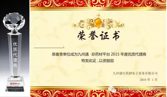 根据综合评分,总分在80分以上的优质代理商和前10名采购商可获奖,奖品为九州通•珍药材平台认可的九州通•珍药材平台“优质代理商”、“十佳采购商”奖杯和荣誉证书。