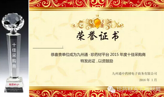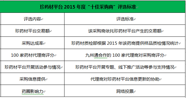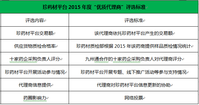 九州通·珍药材平台2015年度“优质代理商”“十佳采购商”评选活动