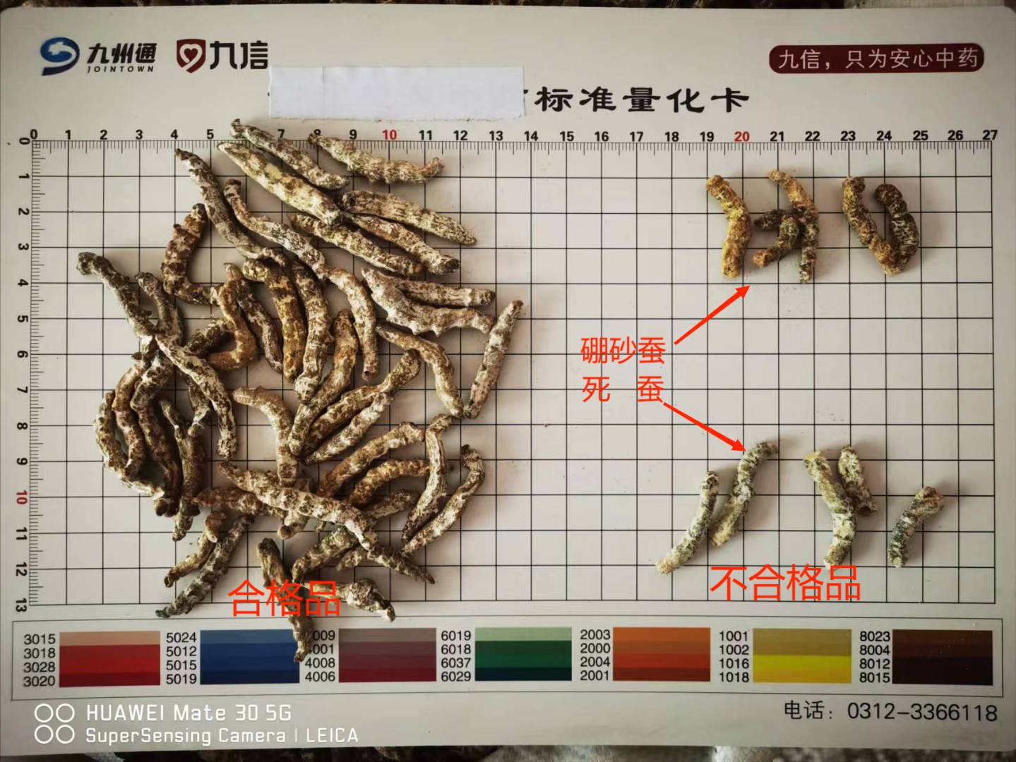 600Kg质量要求:"水洗货,长2~5cm,直径0.5~0.7cm,过4mm方孔筛,死蚕等不超过3%,不得发霉,捡去黑蚕、蚕丝。水分 不得过12%,总灰分 不得过6.5%,酸不溶性灰分 不得过1.7% 本品每1000g含黄曲霉毒素B1不得过1μg,含黄曲霉毒素G2、黄曲霉毒素G1、黄曲霉毒素B2和黄曲霉毒素B1的总量不得过1μg。浸出物不得少于22.0%。"