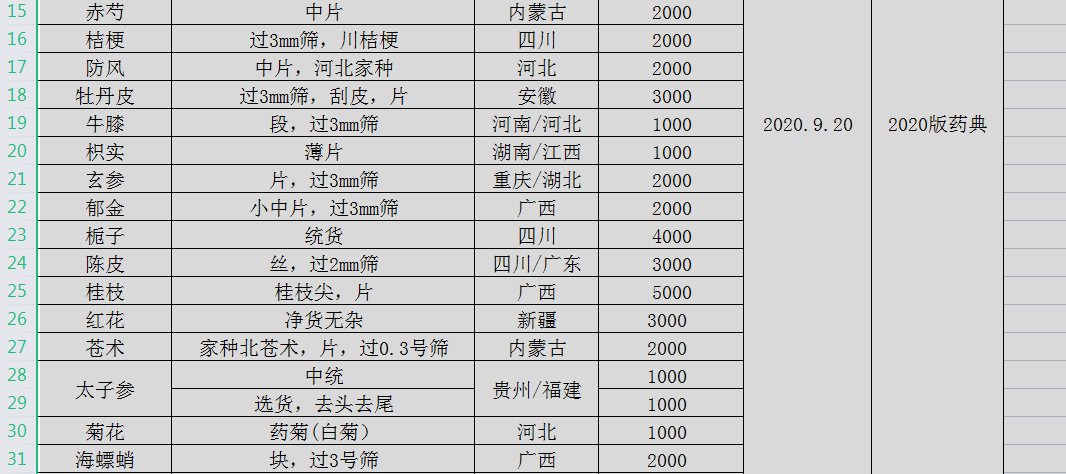 1000公斤质量要求:2020版药典标准,无虫蛀,硫不超标,无霉,无变色,无走油,干度好,杂质少