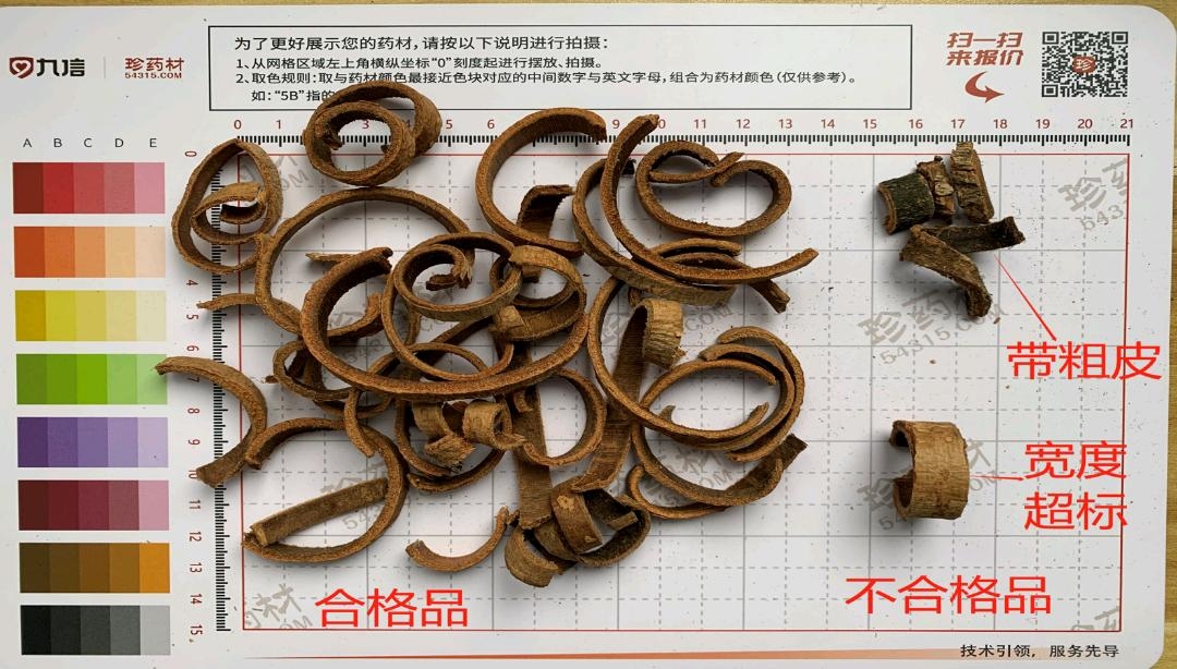 5000Kg质量要求:去净粗皮切丝,内表面紫棕色或深紫褐色,厚度不低于0.2cm,丝宽0.5-1.0cm,内表面无霉变;水分≤9.5%,含量≥2.1%。