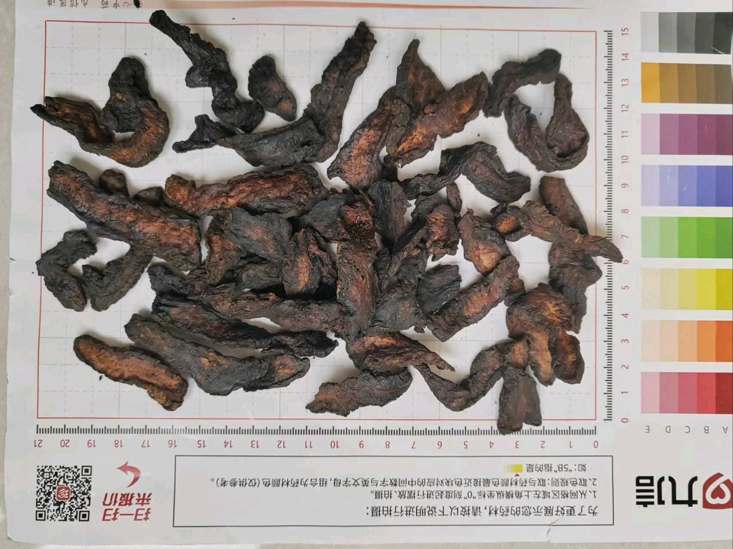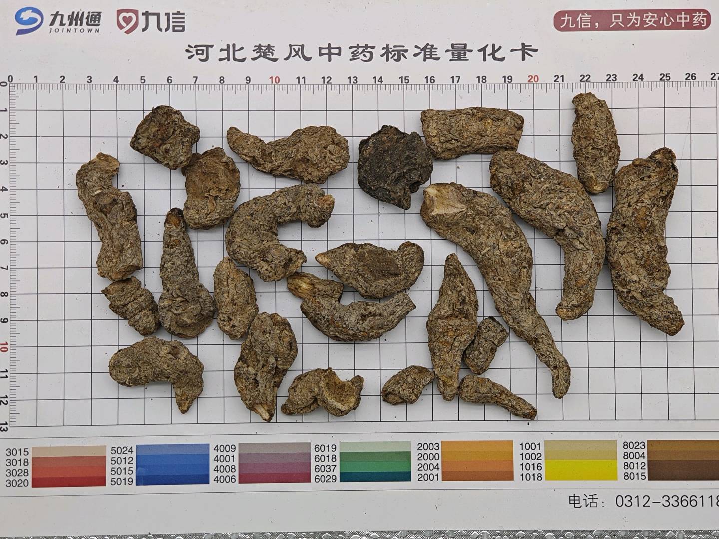 2010Kg质量要求:60支个子切片,产地加工片,不规则的厚片。切面棕黑色或乌黑色,过透4mm筛,厚度大于4mm不得过10%。内控标准:水分≤14.0%,总灰分≤7.2%,酸灰≤2.8%,SO2≤100mg/kg,浸出物≥71.5%,梓醇≥0.22%,地黄苷D≥0.11%