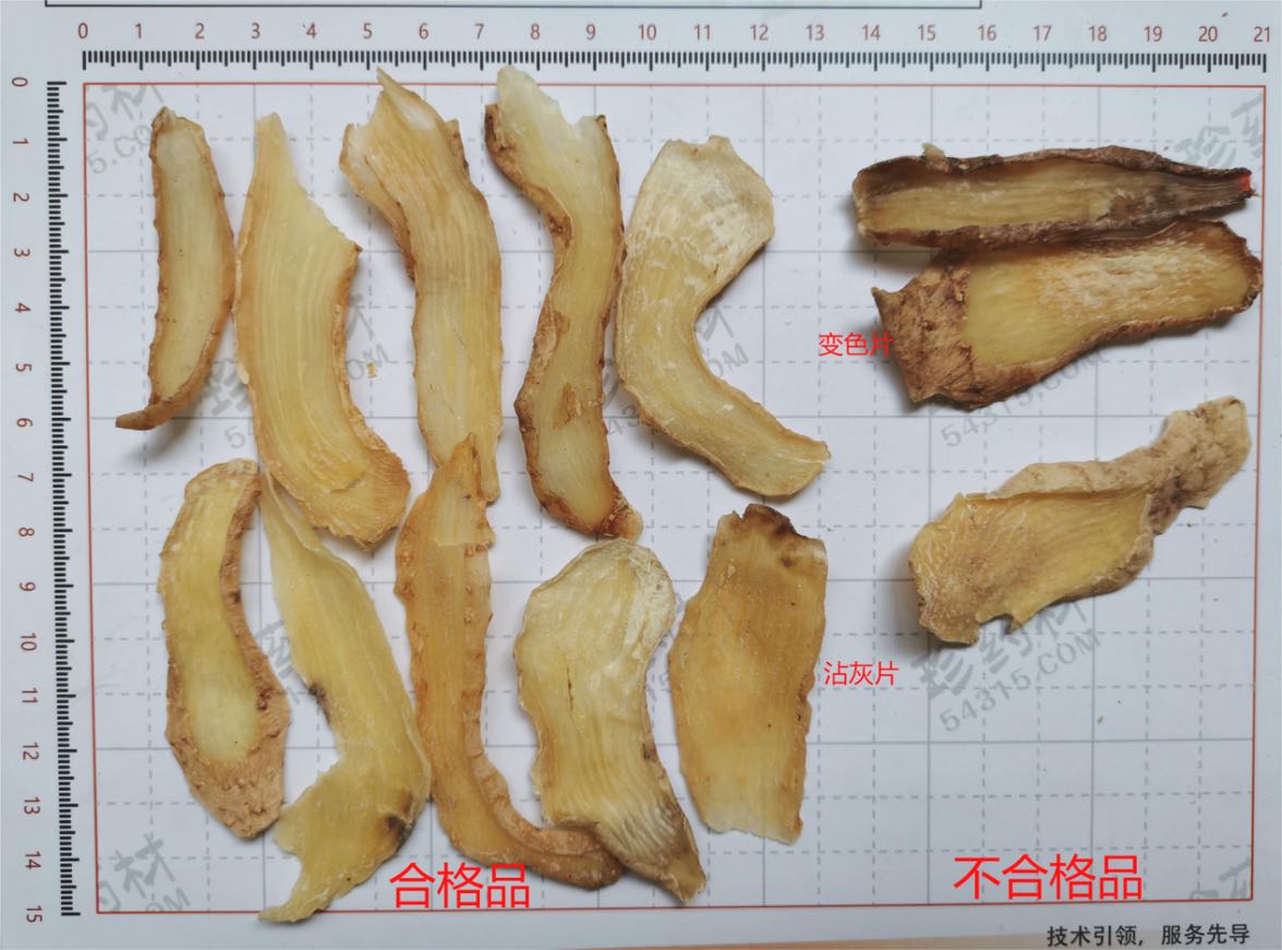 1000Kg质量要求:鲜切片,最宽处不低于15mm占比50%,10mm方孔筛下碎片不得过5.0%,无黑点无伤疤,切面黄白色,大小、颜色均一,10%≤边皮片≤30%,无异物;无虫蛀、发霉、掺伪等变质情况;水分≤11.5%,灰分≤4.0%,重金属符合药典要求,SO2≤280mg/kg,醇溶性浸出物≥15.5%,含量:天麻素和对羟基苯甲醇总量≥0.27%、0.30%。