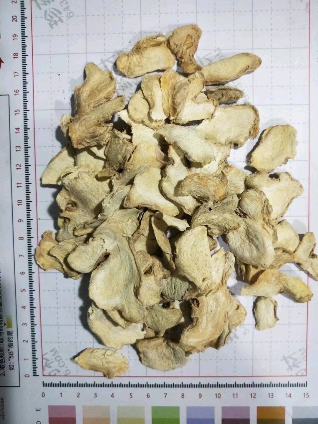 2500Kg质量要求:颜色鲜亮,中风风选去边皮,发黑坏姜片不超3%。片厚在2-4mm以内,过2mm筛,水分≤18.0%,总灰分≤5.0%,浸出物≥24.0%、 挥发油≥1.0%(ml/g)、含6-姜辣素≥0.66%。