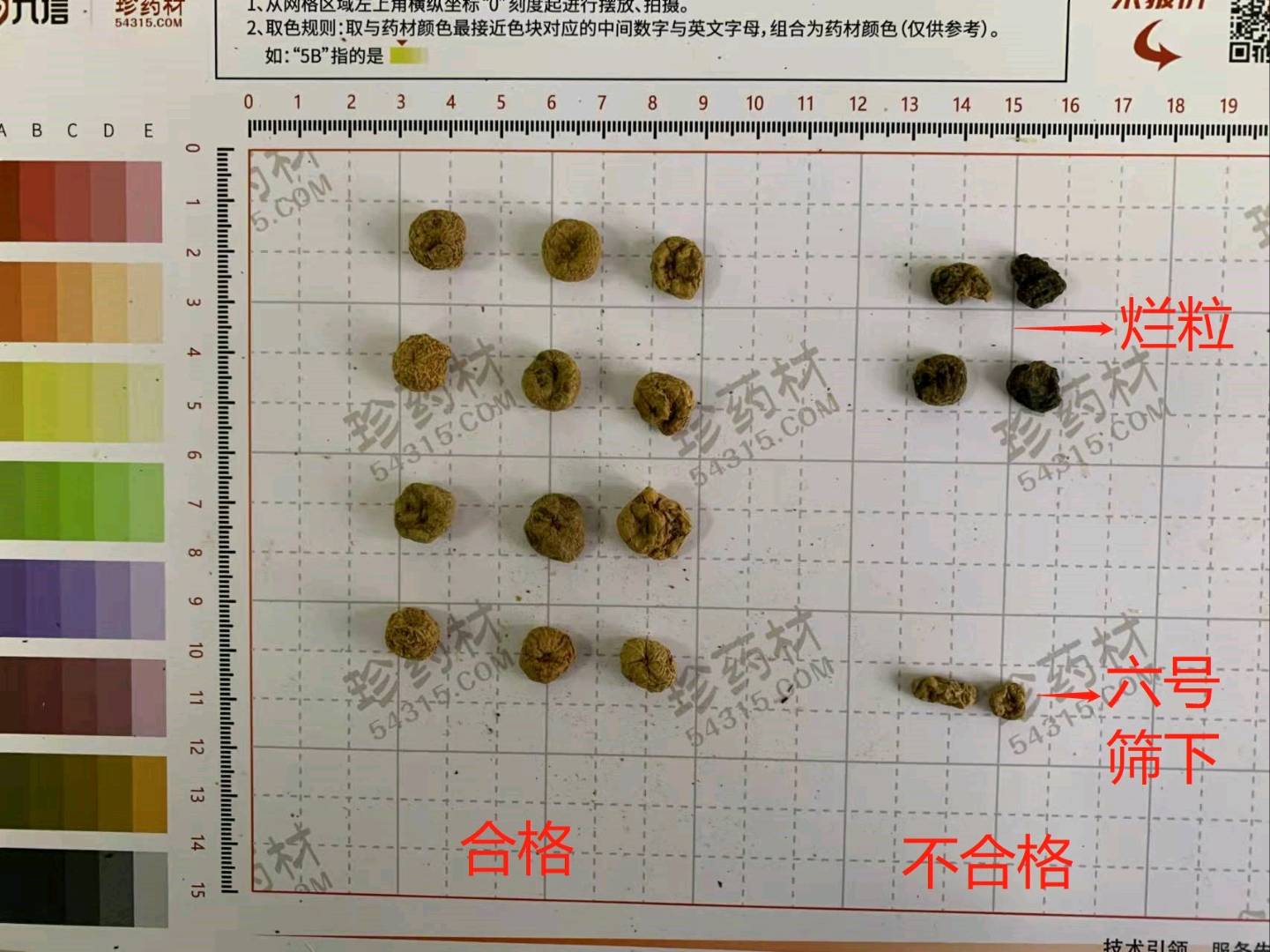 600Kg质量要求:个子:除去须根,表面黄棕色或灰黄色,断面黄褐色,直径0.5~1.5cm,直径0.5cm以下不得过10%,6mm筛以上占比65%,无染色增重,无杂质、虫蛀、发霉。内控标准:水分≤14.0%,灰分≤3.6%,SO2≤100mg/kg,浸出物≥14.0%,延胡索乙素≥0.055%,黄曲霉不得过药典标准的一半。