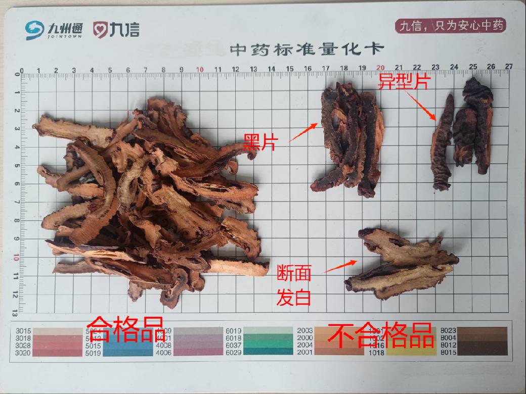 1020Kg质量要求:饮片平均最窄宽度3-5cm,表面颜色棕红色,过透10mm 方孔筛, 霉片、 虫蛀片和黑片不超过 5%, 异形片不超过 10%,水分内控14.0%(标准15.0%),过色选,挑黑片