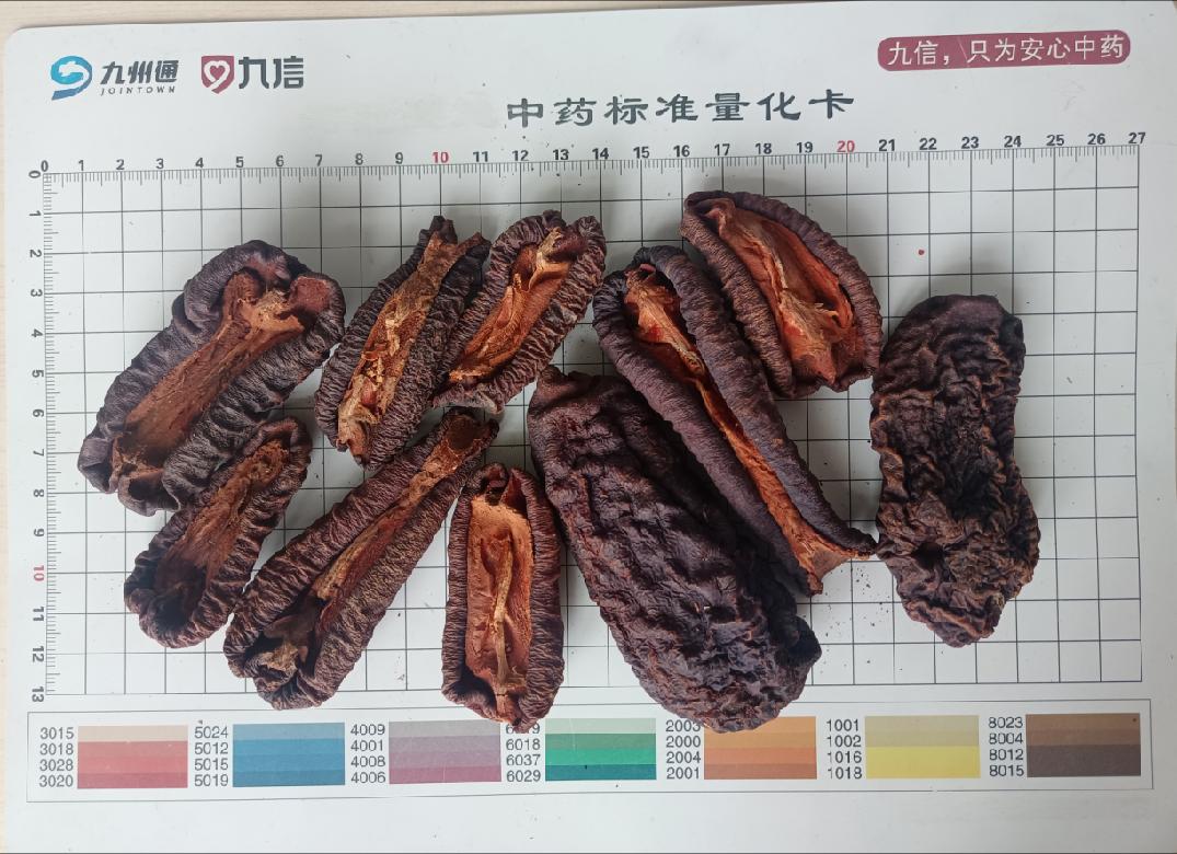 1000Kg质量要求:多呈长圆形的纵剖个,长度4㎝-9㎝,果肉厚度1-2.5㎝,外表面紫红色或红棕色 随机取 50 个, 最宽部位不足 2cm 的个不超过 5 个,虫蛀个不超过 5 个, 霉变个不超过 5 个。 无活虫。
