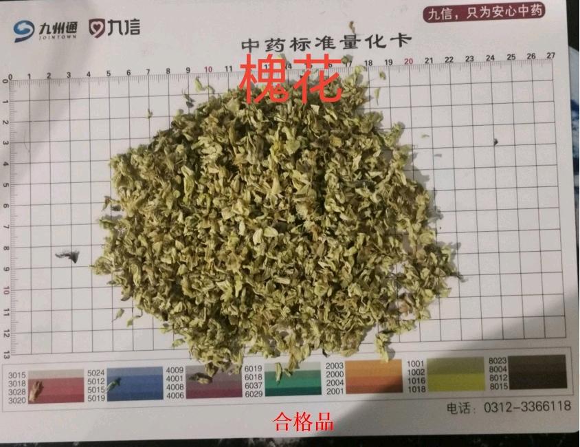 100Kg质量要求:槐花,花萼黄绿色,花瓣黄白色,完整,叶子、杆子不能超过2%。