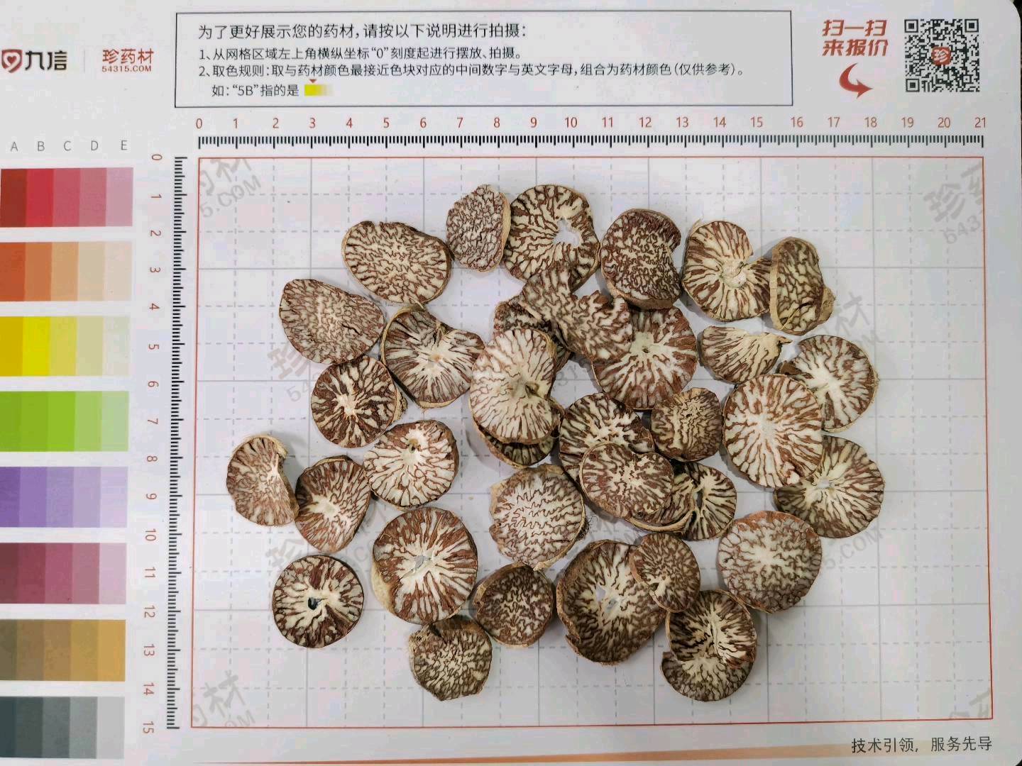 420Kg质量要求:薄片1-2mm,直径1.5~3cm,过4mm筛,4mm筛以下不得超3%,无发霉。内控标准:水分≤9.0%,SO2≤100mg/kg,含量槟榔碱≥0.22%,黄曲不得过药典标准一半
