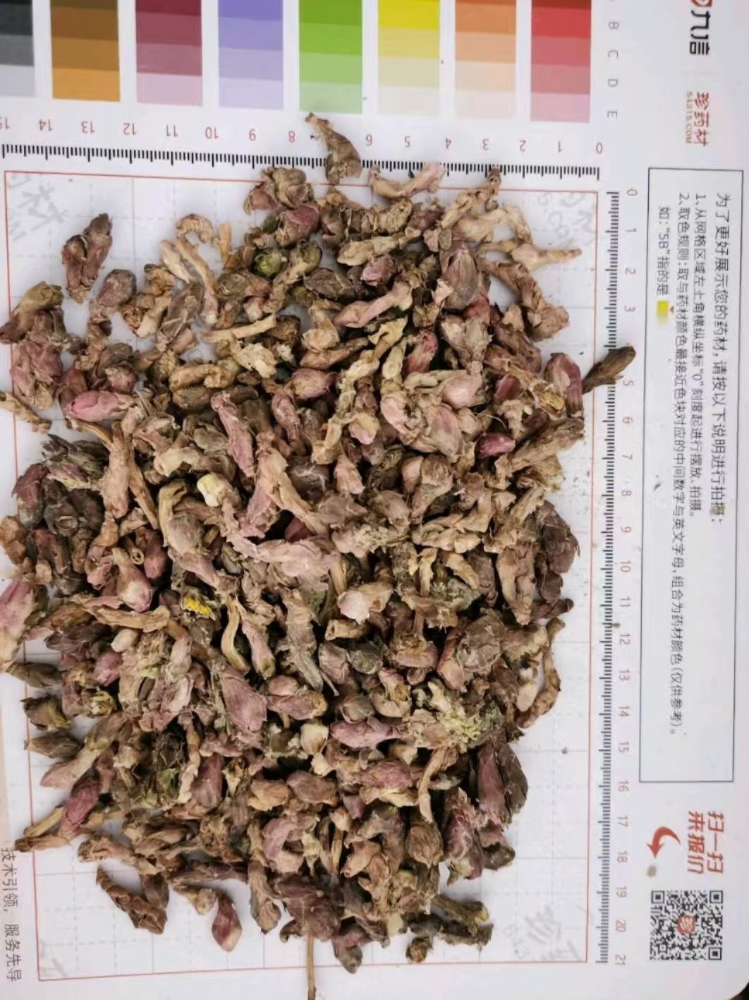 510Kg质量要求:花直径0.5~1cm,外表面紫红色。无土块,脱落花梗不得过3%。过2mm筛,颜色均一,色泽鲜亮。内控标准:水分≤12.0%,SO2≤100mg/kg,浸出物≥22.0%,款冬酮≥0.077%,农残不得过药典标准的一半。