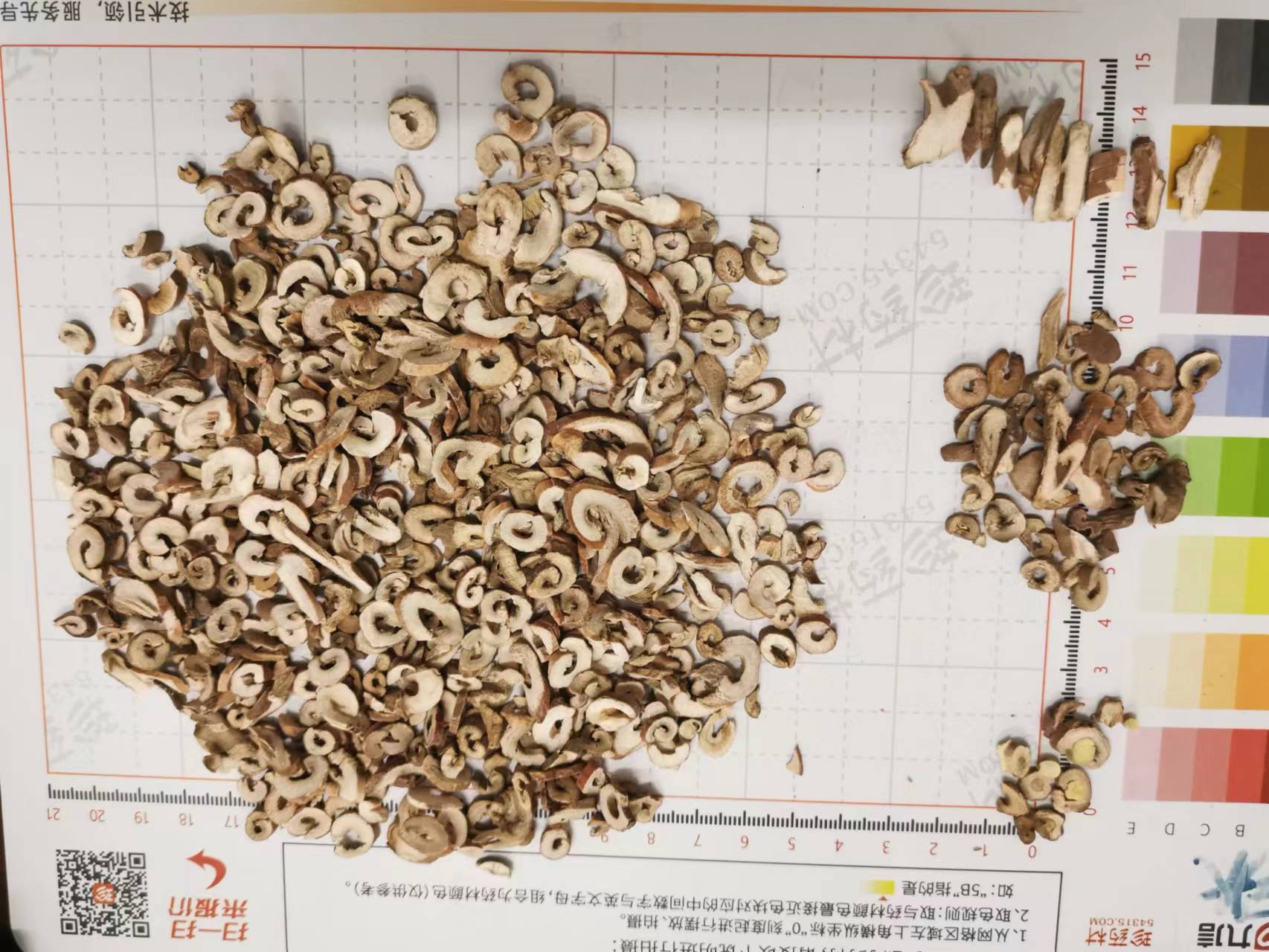 600Kg质量要求:产地片:直径0.5~1.2cm,直径0.5cm以下不得过10%,刮丹皮,厚度1-2mm,厚度超过2mm的不得过10%,过3mm筛,直径小于0.5cm的不得少于80%,色选去掉黑片,色白,抽心率98%。内控标准:水分≤12%,灰分≤4.5%,SO2≤100mg/kg,浸出物≥16.5%,含量≥1.32%