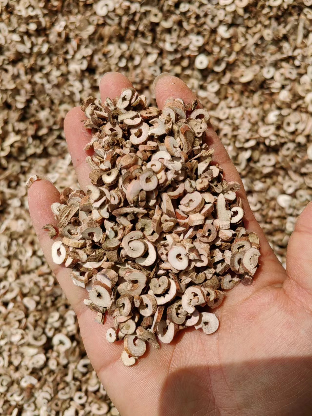 1800Kg质量要求:产地片:直径0.5~1.2cm,直径0.5cm以下不得过10%,刮丹皮,厚度1-2mm,厚度超过2mm的不得过10%,过3mm筛,直径小于0.5cm的不得少于80%,色选去掉黑片,色白,抽心率98%。内控标准:水分≤12%,灰分≤4.5%,SO2≤100mg/kg,浸出物≥16.5%,含量≥1.32%