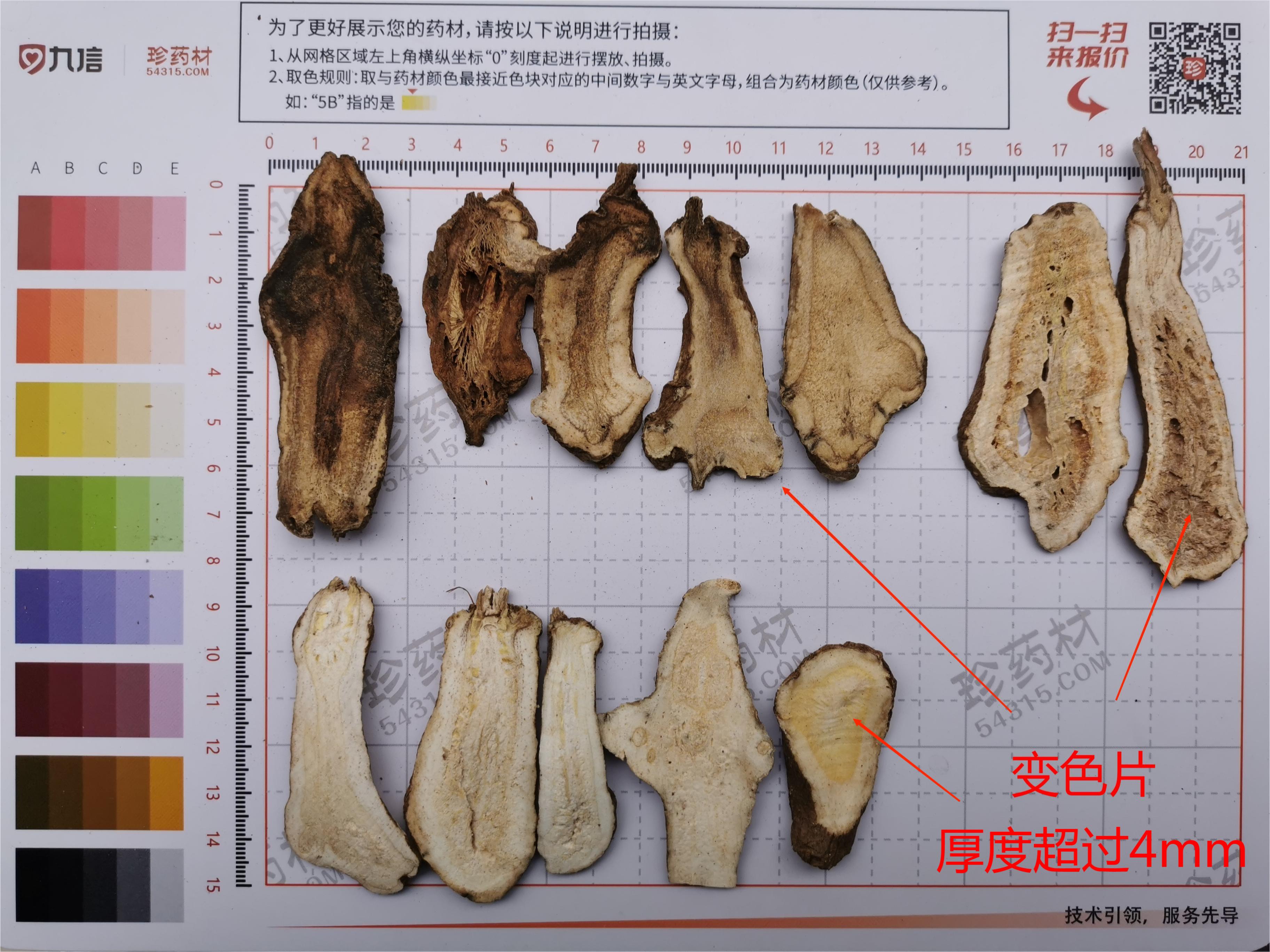 2400公斤质量要求:产地加工片,过8mm方孔筛,厚2至 4mm,挑选变色及走油比重不得过3%,杂质不得过3%,无霉变虫蛀。农残合格。内控标准:水分≤14.0%,灰分≤4.5%,SO2≤300mg/kg,浸出物≥37.0%,2020版药典标准,无虫蛀,无霉