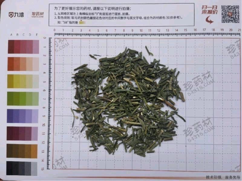 1000Kg质量要求:紧急计划 过2mm方孔筛,(带根货)根占比不得少于5%,茎淡黄绿色至绿色,段长1.0-1.5cm,片型均匀;水分≤14%,酸灰≤0.2%,总灰≤7%