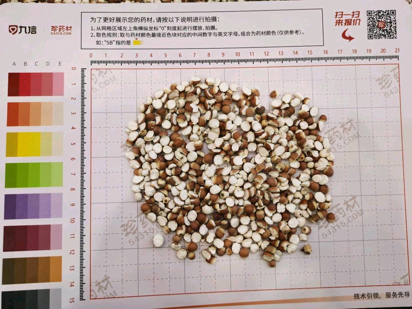 1200Kg质量要求:两瓣,去净硬壳,直径3-6mm,过透2mm方孔筛,表面有棕红色内种皮,断面类白色,粉性杂质(莲子碎片等)≤1.0%。内控标准:水分≤13.0%,灰分≤0.8%,SO2≤100mg/kg,浸出物≥9.0%