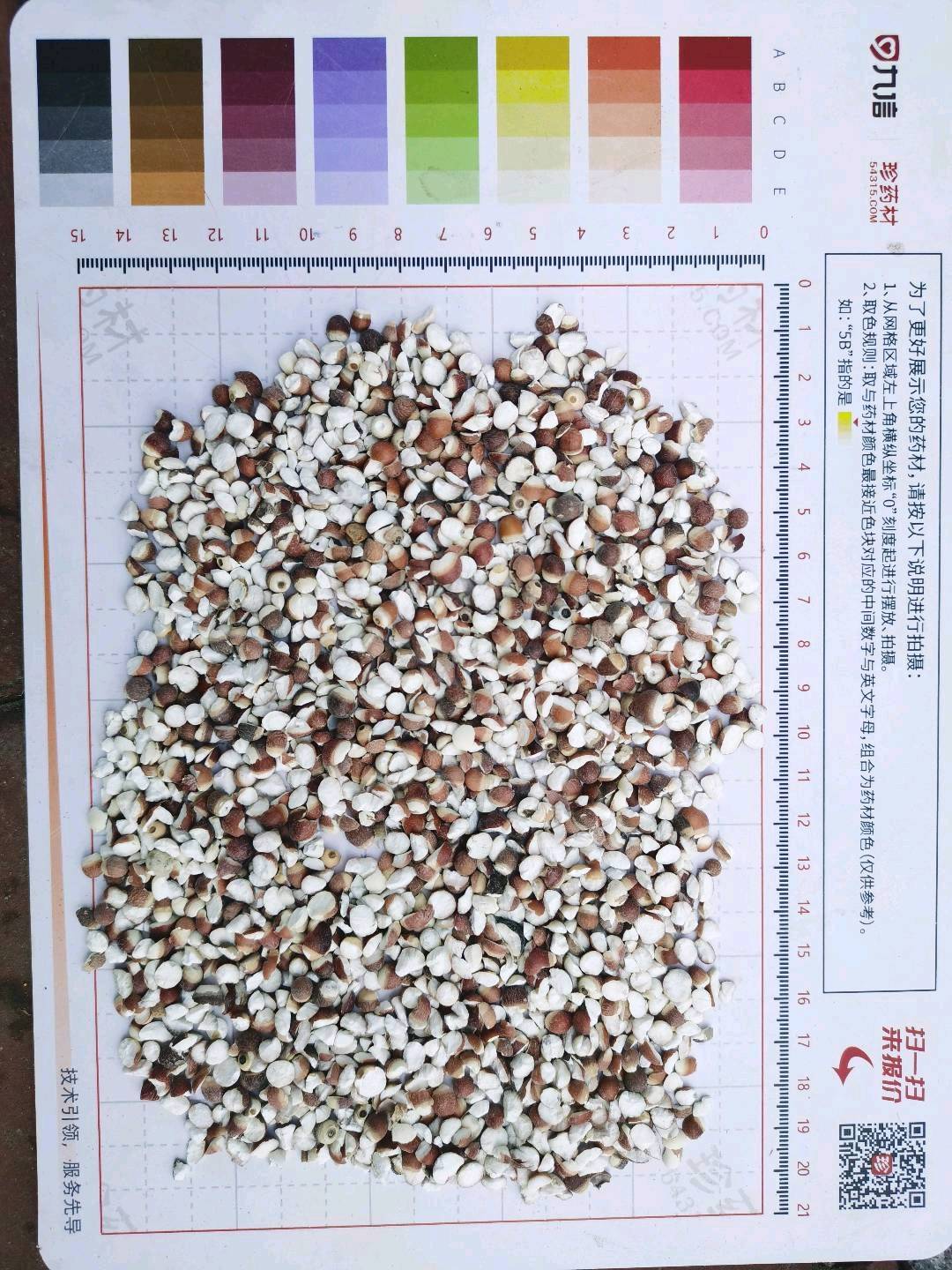 1500Kg质量要求:对半开,直径6-8mm,过3mm方孔筛;无异物;无虫蛀、发霉、掺伪等变质情况;内控标准:水分≤13.0%,灰分≤0.8%,SO2≤100mg/kg,浸出物≥9.0%