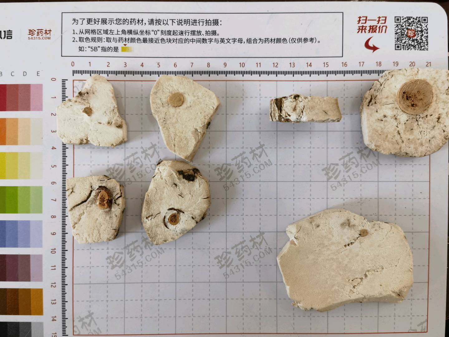 1500公斤质量要求:长宽4-6cm,厚0.5-1cm,茯神木直径不过1.5cm,,水分灰分浸出物合格,颜色好