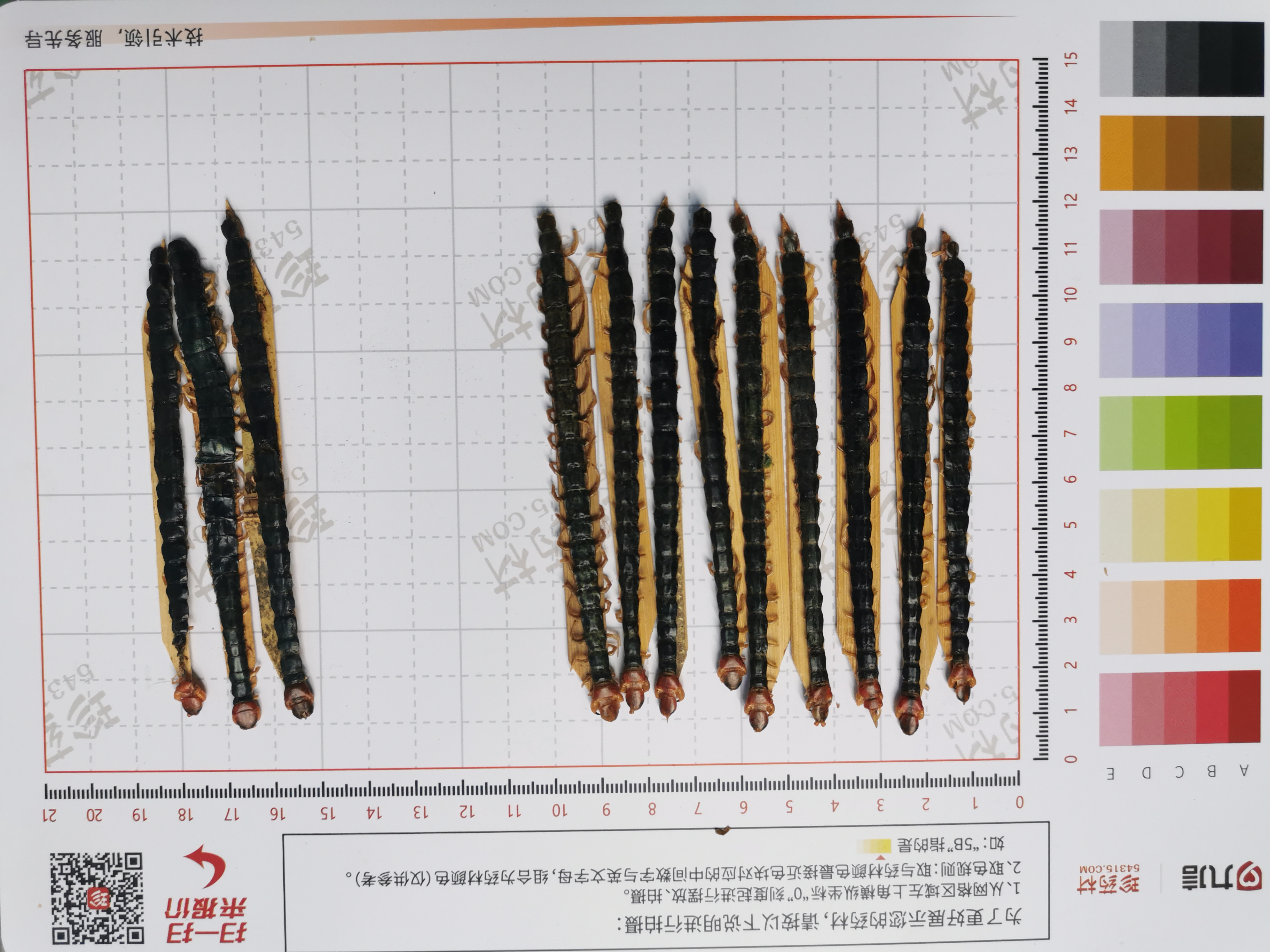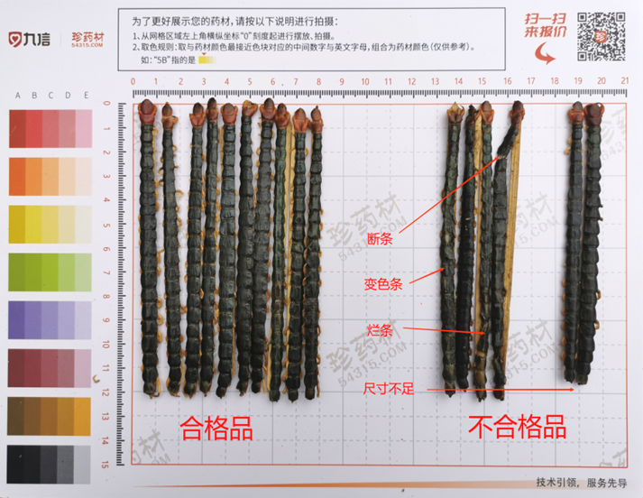12000条质量要求:每捆100条。头尾方向一致,用绳子绑一起。每100条中,尺寸不足的(长度不小于11.5cm)不超过10条,烂条和断条不超过3条,穿肉超过1/3不超过10条;插签和绑线不超过3条;竹签穿肉不超过10条;无伪品,无虫蛀、腐烂和霉变。水分内控13%。具体咨询采购员