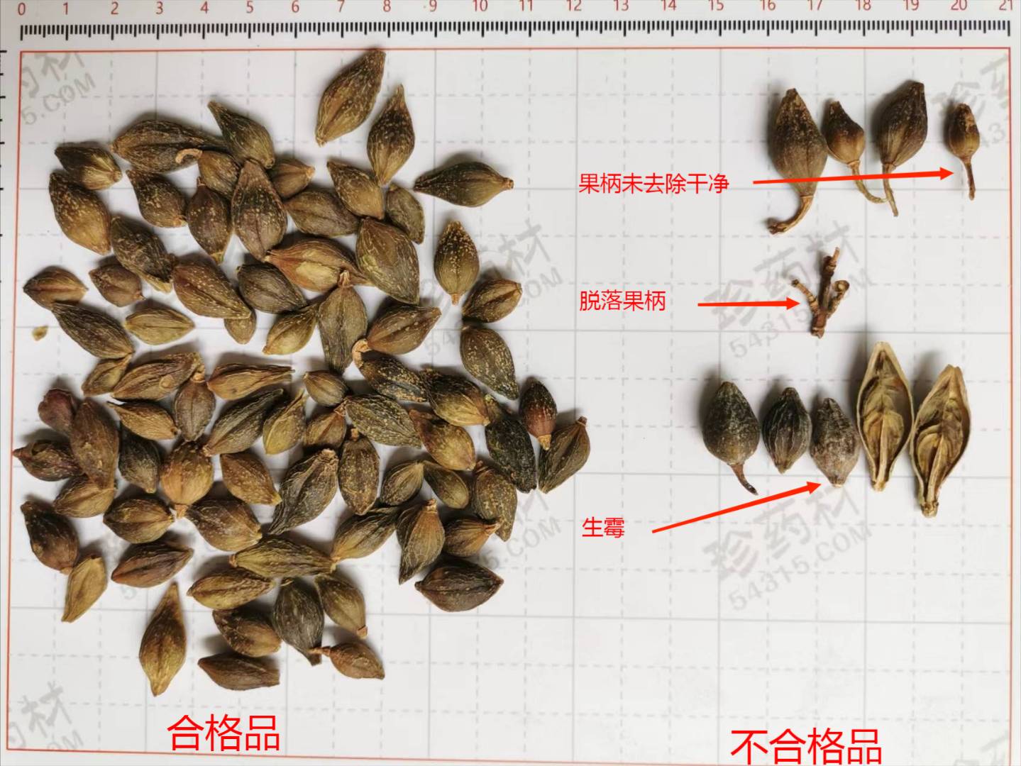 1020Kg质量要求:饱满,颜色青灰均匀;无带果柄的粒,4mm方孔筛下不得过2%,筛上枝杆、脱落果柄等杂质不得过2%,无塑料膜和编织袋线等异物,果柄重量不得过3%。内控标准:水分≤9.0%,灰分≤3.6%,SO2≤100mg/kg,浸出物≥33.0%,挥发油≥2.4%,连翘苷≥0.165%,连翘酯苷A ≥3.85%.