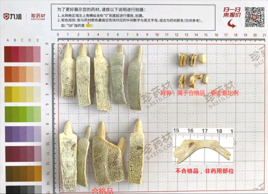 1000Kg质量要求:甲条,过4mm筛,不得掺伪,不得掺杂,不得有头骨、腿骨等杂质,小甲条不超过25%。水分≤11.0%、浸出物≥5.5%